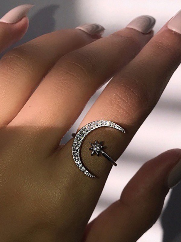 Rhinestone Crescent Moon Cuff Ring