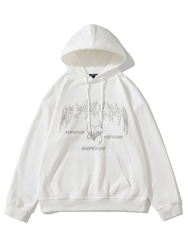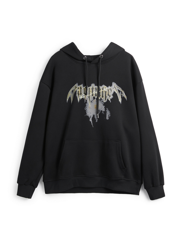 Men’s Devil Styling Wing Print Fleece Oversized Hoodie
