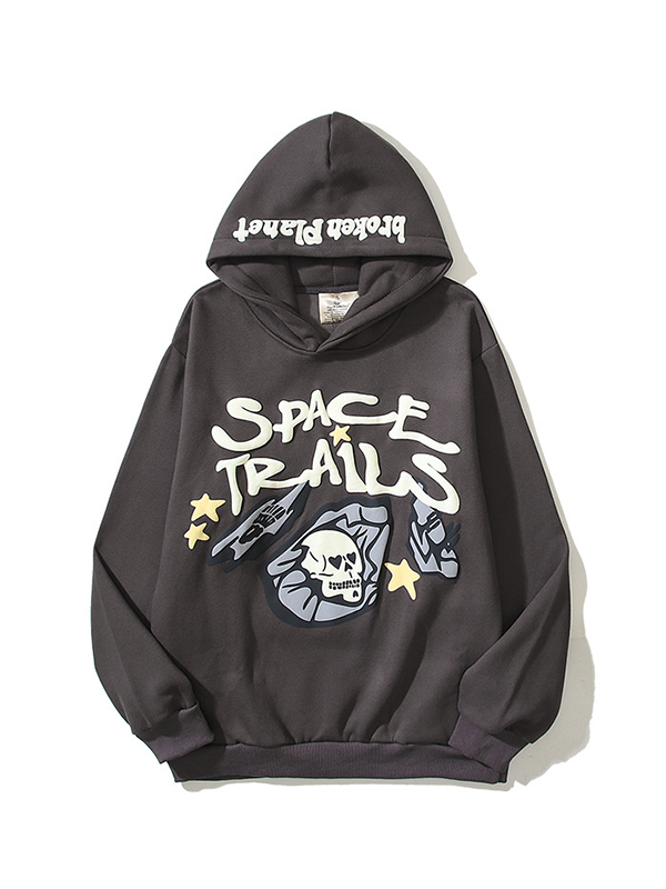 Men’s Street Plus Velvet Print Oversized Long Sleeve Hoodie