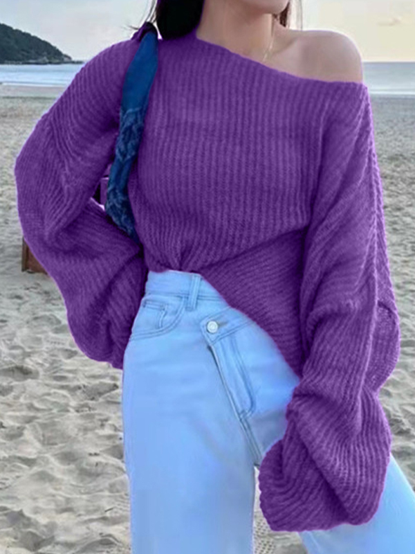 Solid Breasted Rib Baggy Long Sleeve Knit