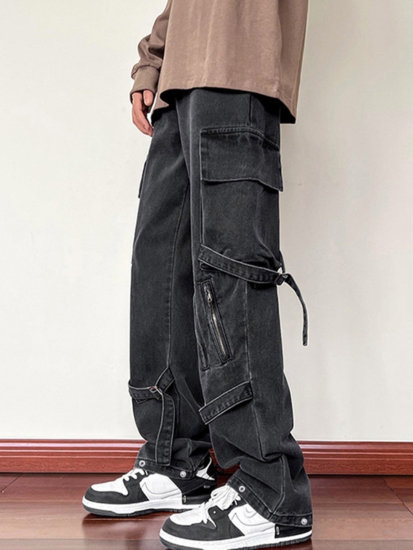 Men’s Zipper Lace Up Decor Cargo Jeans