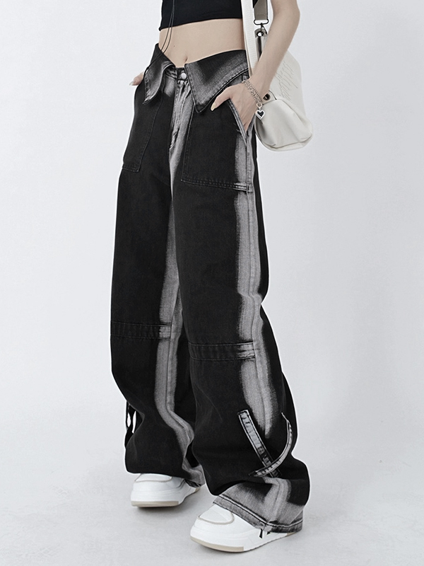 Washed Street Style Design Cargo Jeans