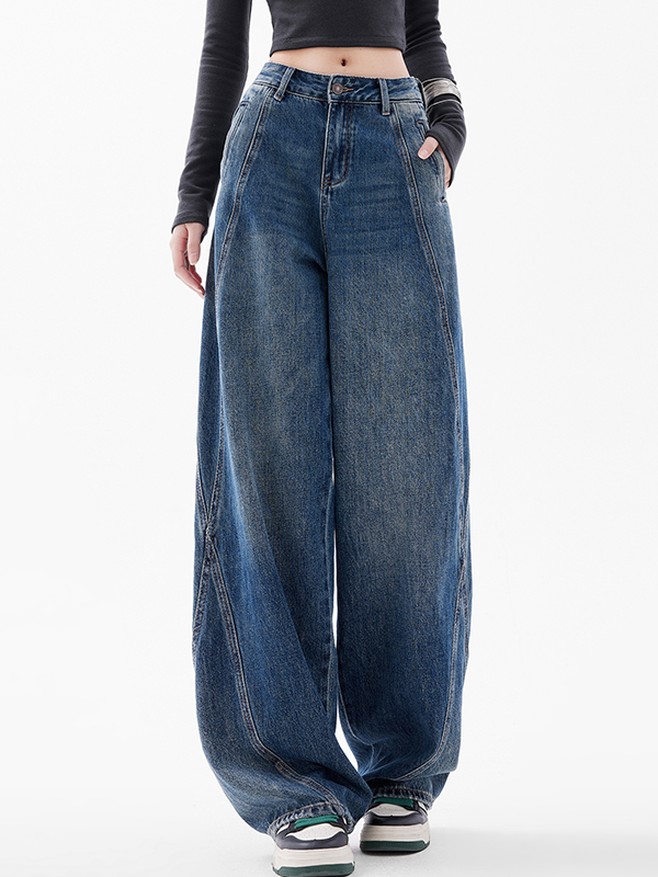 Simple Original Cow Color Scimitar Loose Jeans