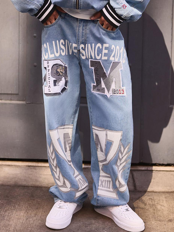 Men’s Letter Cross Loose Jeans