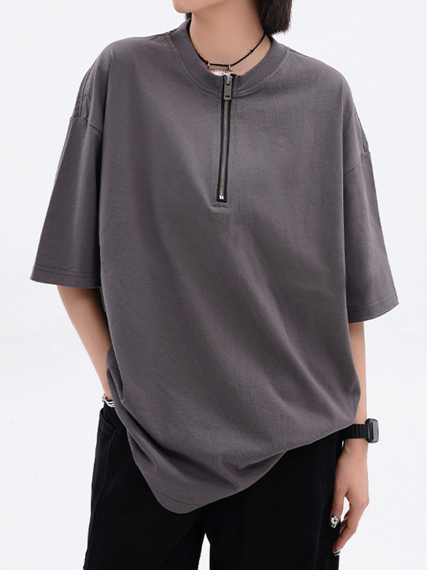 Solid Color Zipper Short Sleeve Tee