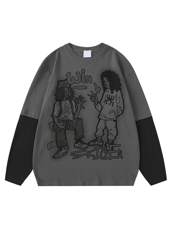 One Shoulder Fake Two Piece Print Long Sleeve Tee