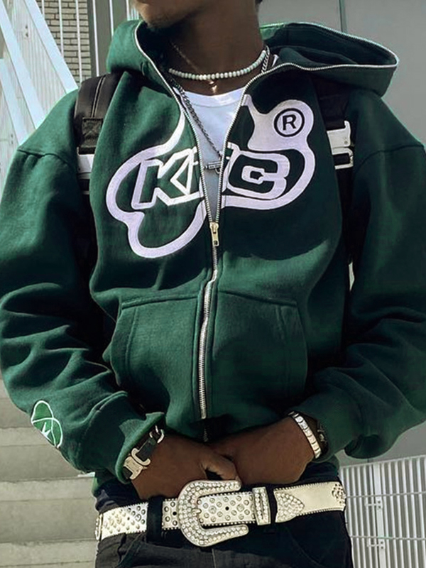 Men’s Print Zip Up Oversized Hoodie