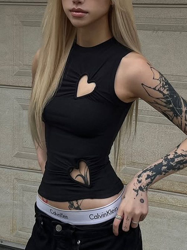 Heart-Shaped Openwork Irregular Pleated Tank Top
