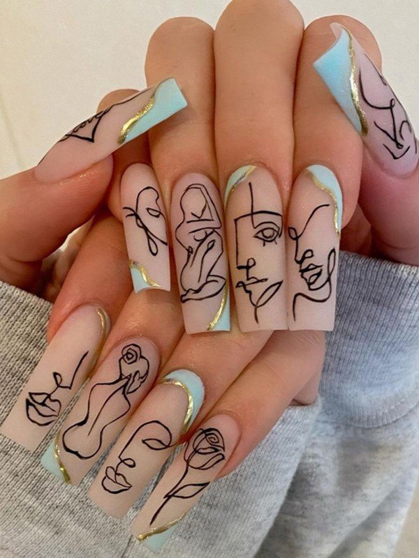 24pcs Abstract Contour Pattern Press On Nails