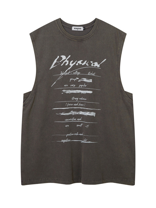 Men’s Vintage Washed Distressed Letter Print Vest
