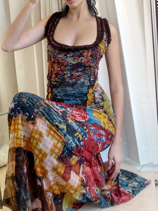 Vintage Random Print U Neck Backless Maxi Dress