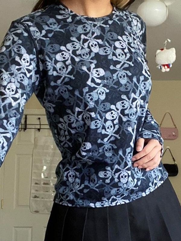 All Over Skull Print Long Sleeve Tee