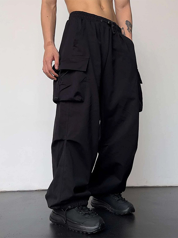 Men’s High Waist Wide Leg Casual Cuffed Cargo Pants