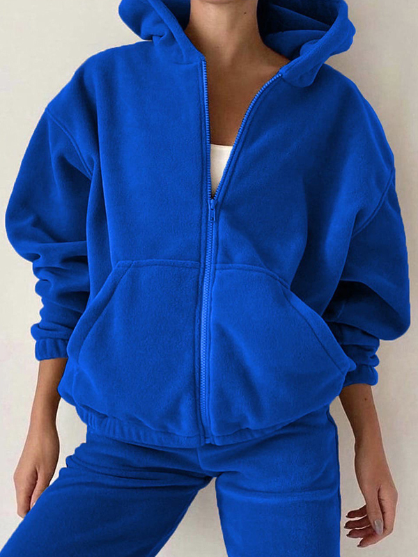Solid Zip Up Oversized Hoodie&Bound Feet Sweatpants Set