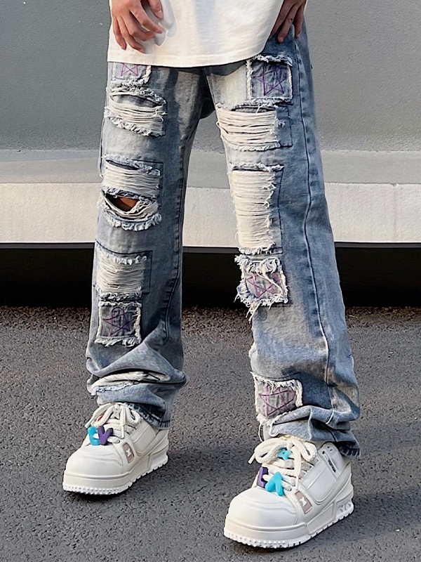 Men’s Washed Ripped Burr Straight Leg Jeans