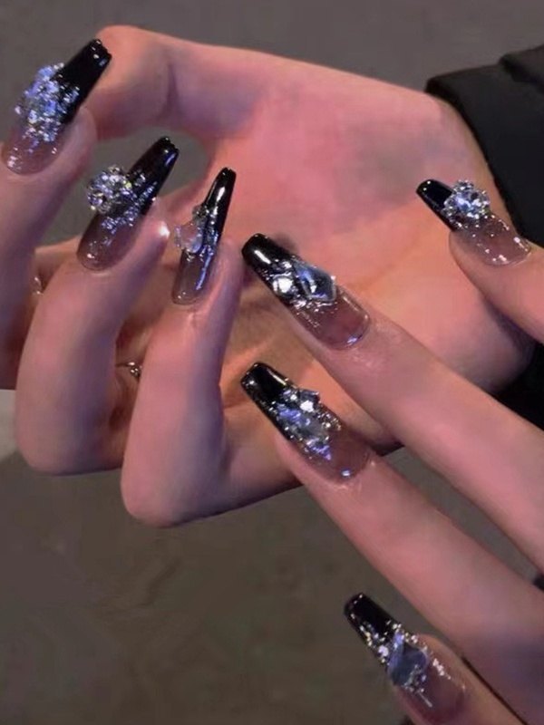24pcs Galactic Rhinestone Embellish Press On Nails