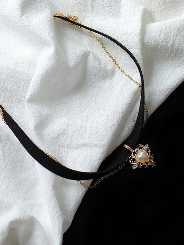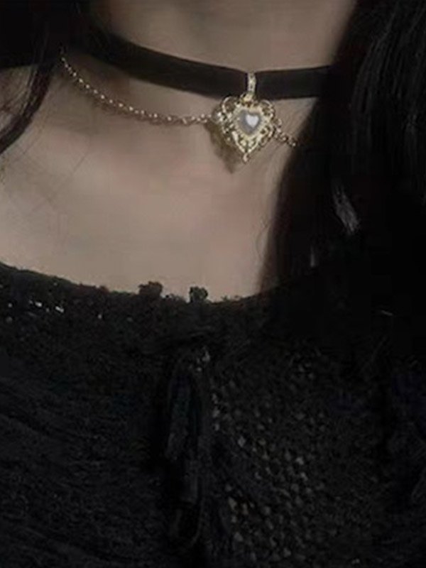 Gothic Heart Chain Velvet Choker Necklace