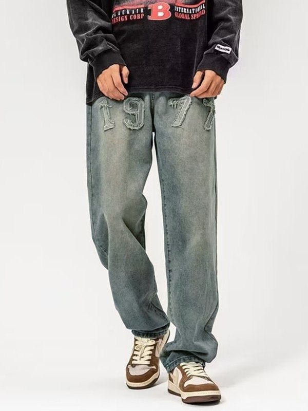 Old appliqué design: The old appliqué design adds a unique and edgy element to these jeans, making them stand out from other denim jeans.