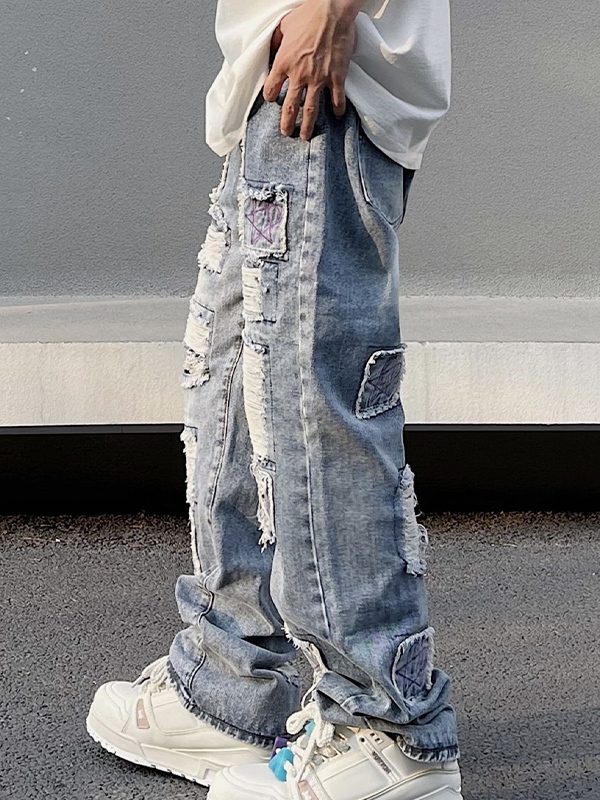Unique Design: The washed design combined with purple star embroidery offers a unique blend of vintage and streetStyle, making it a standout jeans in any wardrobe.