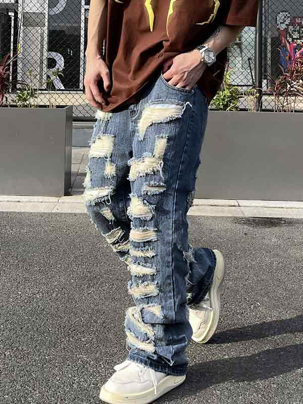 Unique Design: This jeans feature a unique washed design, giving them a vintage and classic look. The irregular ripped design adds a street and cool vibe that stands out from the crowd.