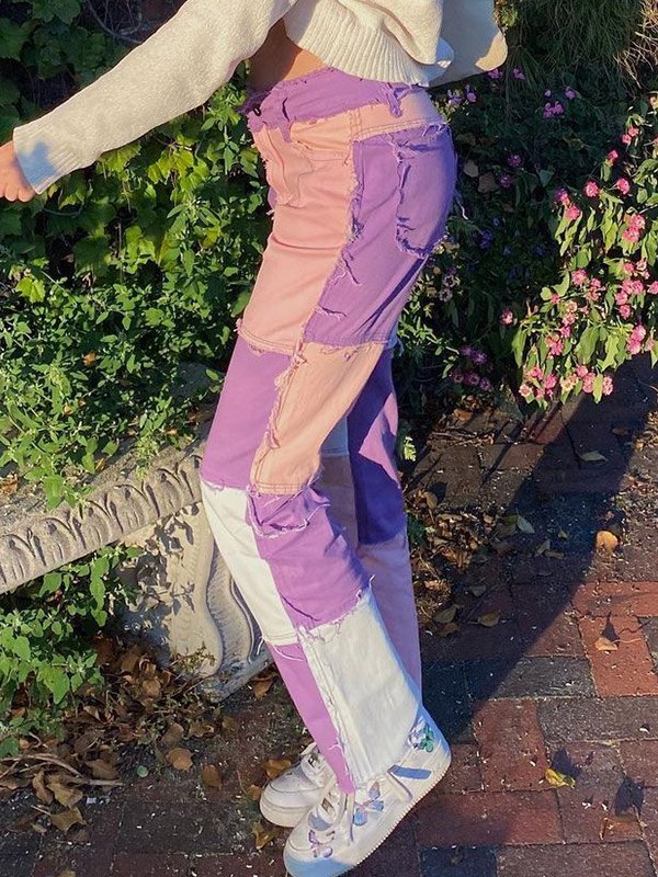 Comfortable and stylish pastel patchwork jeans. Lightweight and good fit. Price is affordable. Belt feels a bit cheap, but overall great for casual wear. Five stars!