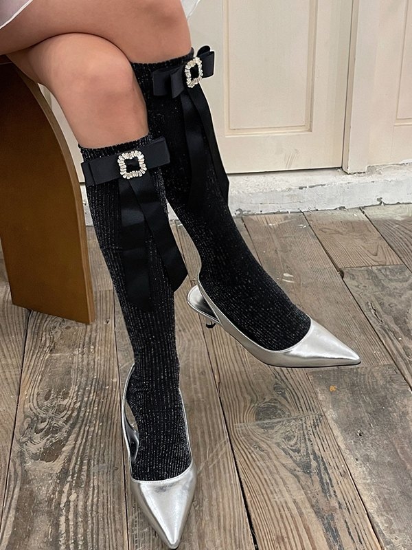 Be the first to review “Rhinestone Bow Embellish Knee High Socks”