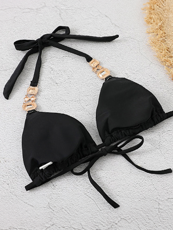 Solid Gem Engraved Halter Tie Back Bikinis