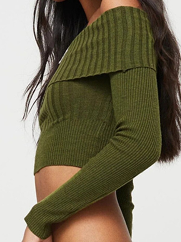 Solid Off Shoulder Cropped Knit Sweater