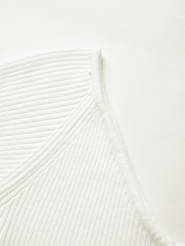 Solid V Neck Ribbed A-line Knit Mini Dress
