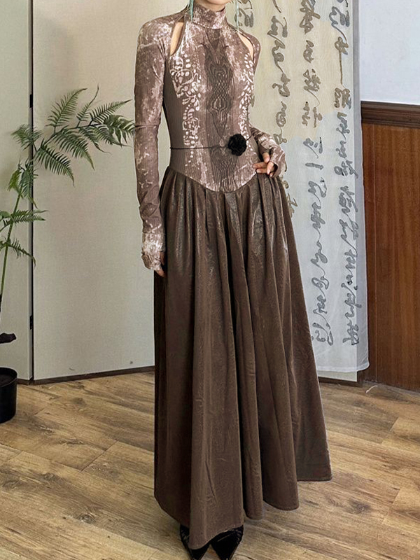 One-Shoulder Mesh Patchwork Maxi Dress