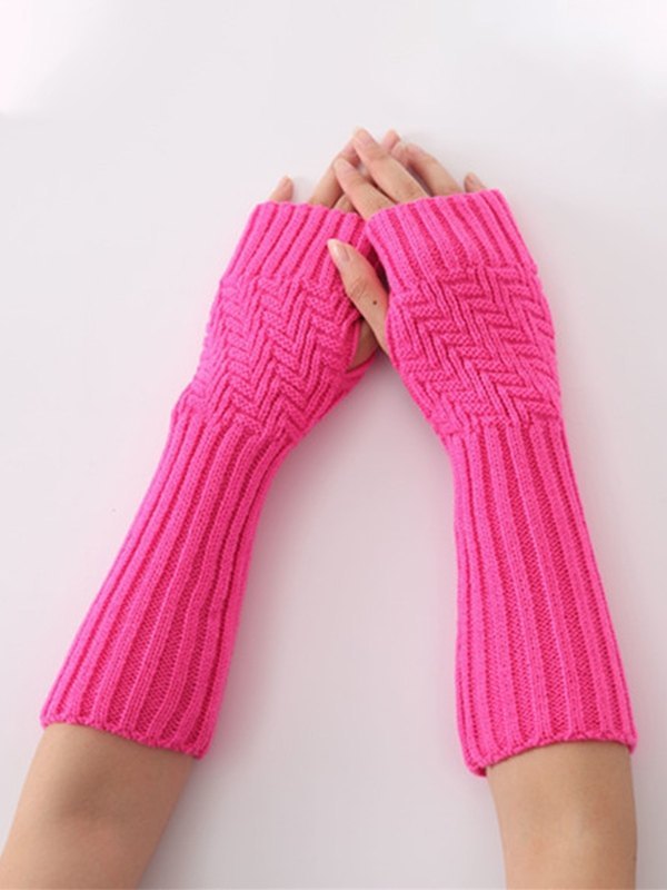 Fingerless Jacquard Ribbed Knit Arm Warmer