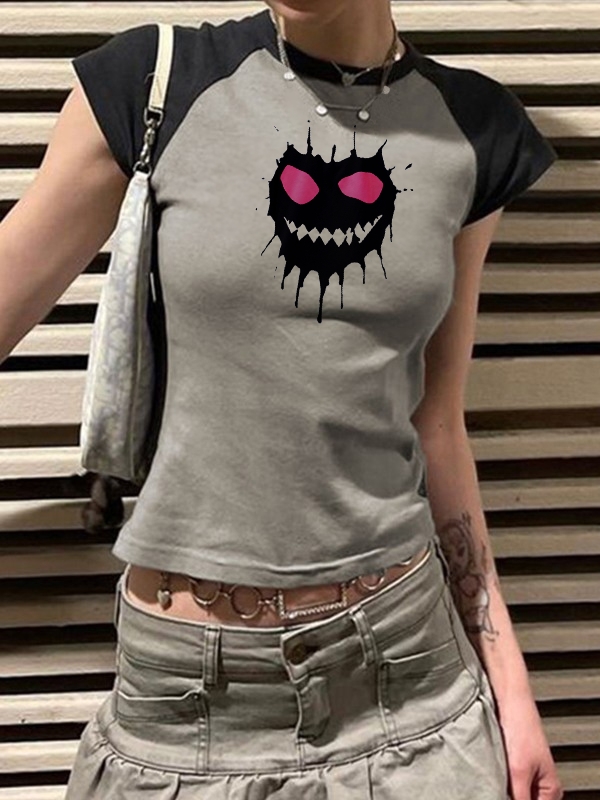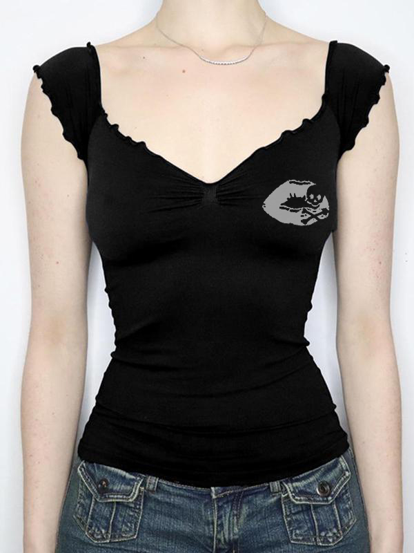 Cross Letter Printed Bubble Sleeve Short Sleeve Tee