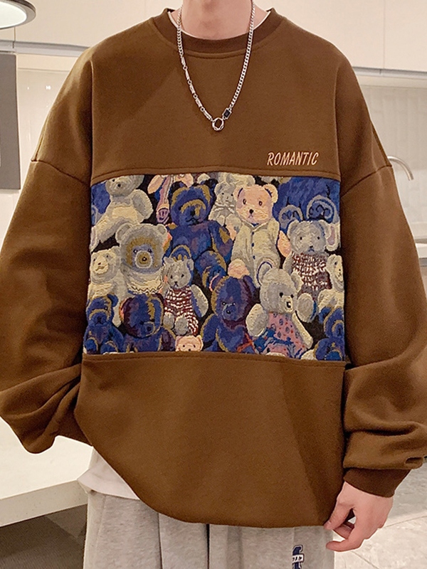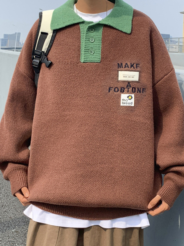 Men’s Contrast Color Letter Embroidery Labeling Knit Sweater