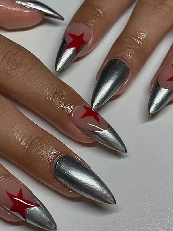 V Neck Star Digital Print Oversized Long Sleeve Tee